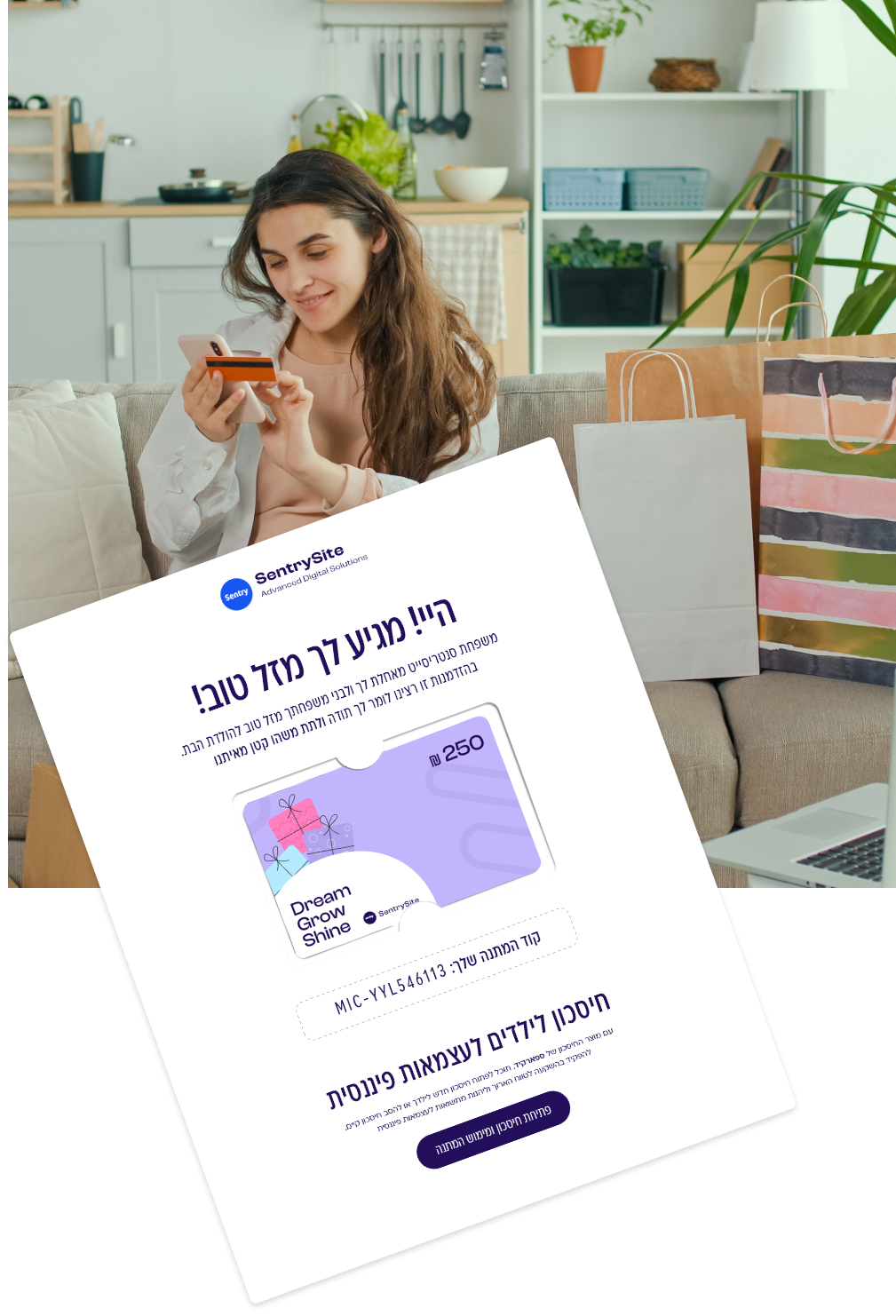 ממשק נוח ליצירת כרטיסי מתנה, שליחת מיילים מעוצבים, כתיבת ברכות והוספת גרפיקה, לצד שירות לקוחות אישי וצמוד.