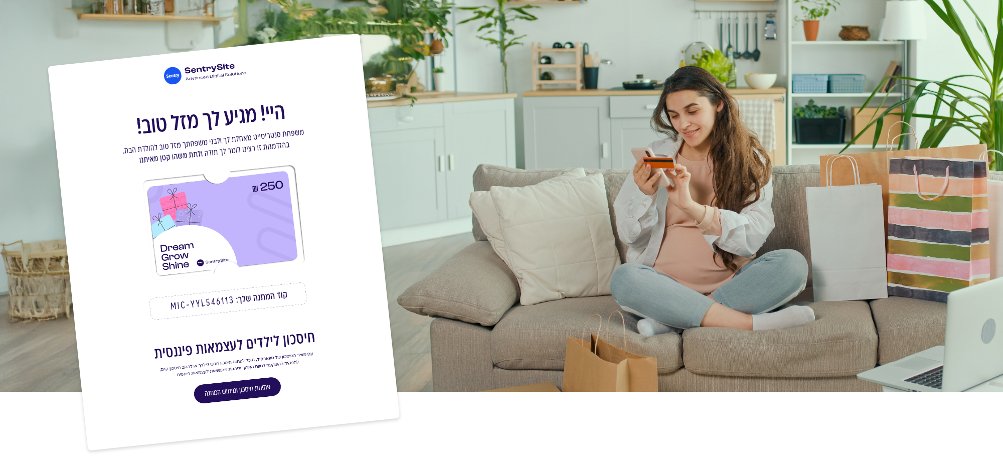 פיתחנו תהליך ייחודי המאפשר לעסקים ולארגונים להעניק מתנת "סיפתח" לילוד, חיסכון ראשון עם הלוגו שלכם וברכה אישית שילוו אותו שנים. המתנה תצבור תשואות לאורך השנים ותוכל לגדול משמעותית בערכה. זו ההזדמנות שלכם להיות חלק ממהפכת החינוך הפיננסי והדאגה לדור העתיד.